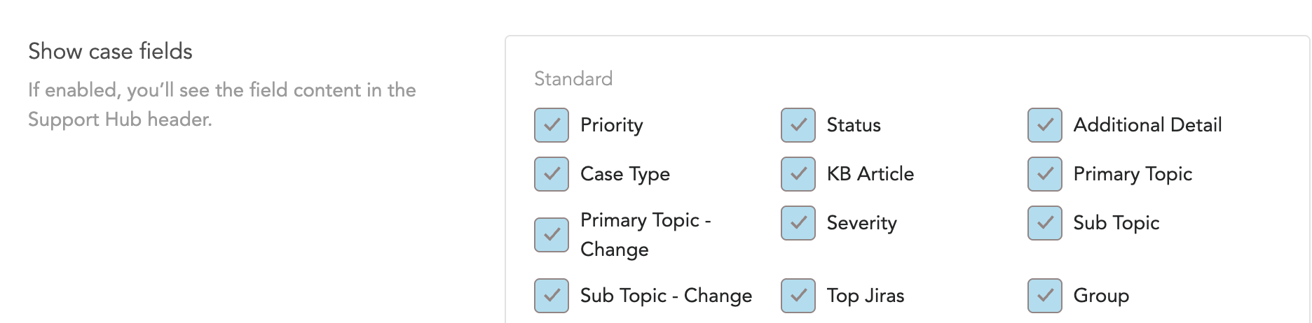 We can unselect the case fields so that they will not be shown in case attributes in SupportHub.
