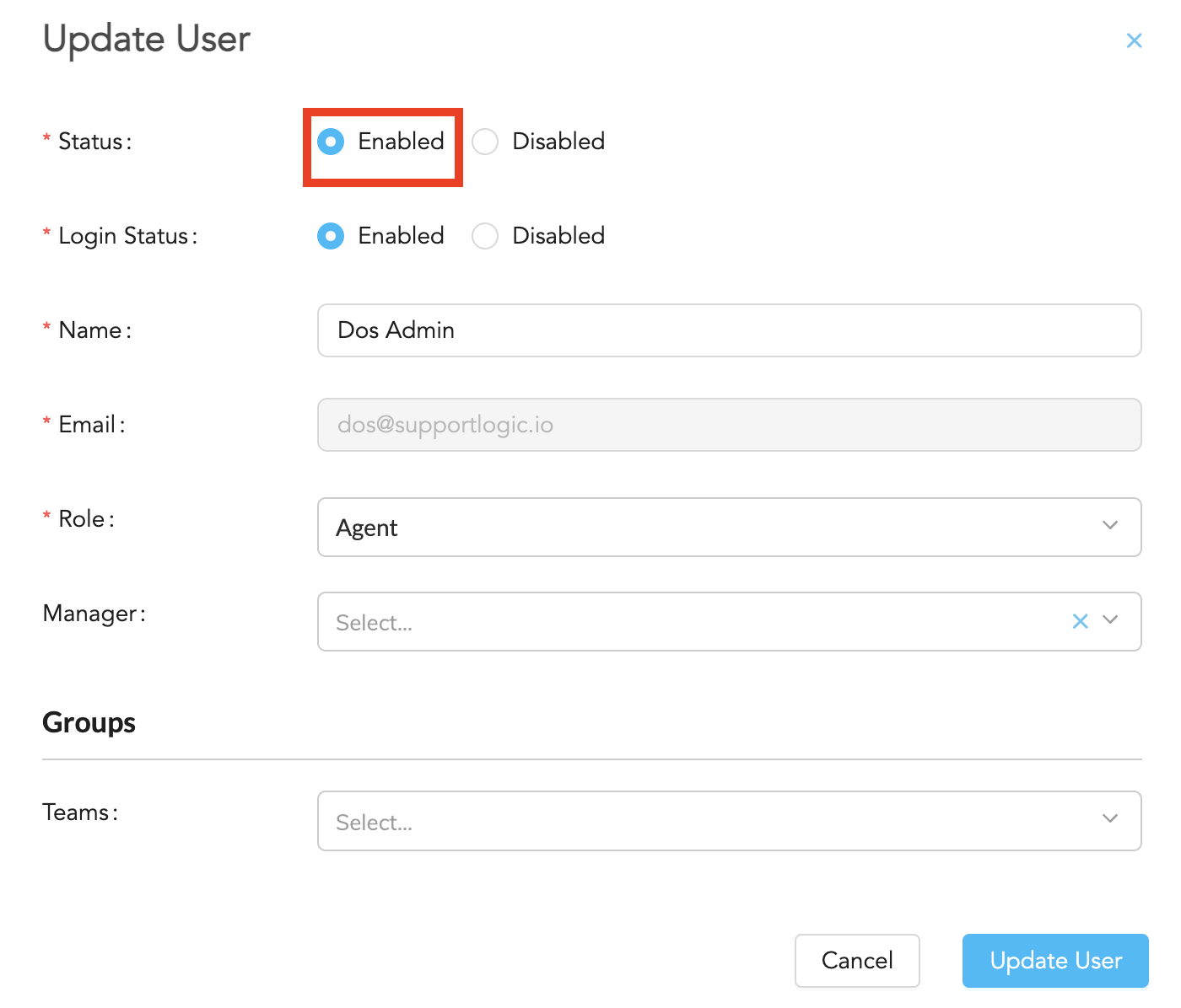 SummaryIf a case is visible in Elevate SX but shows “No Agent” as the case owner, it could indicate that the associated agent is currently disabled in the system. In such scenarios, a few quick validations can help resolve the issue and restore visibility. 1. Navigate to User Management