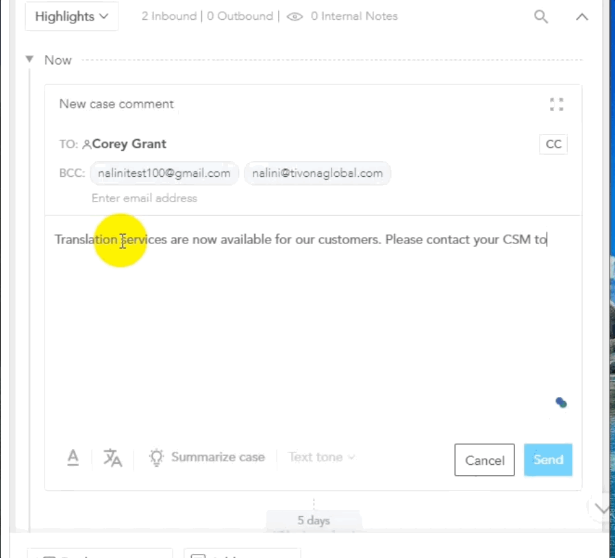 SupportLogic now provides translation capabilities directly within the Support Hub interface: