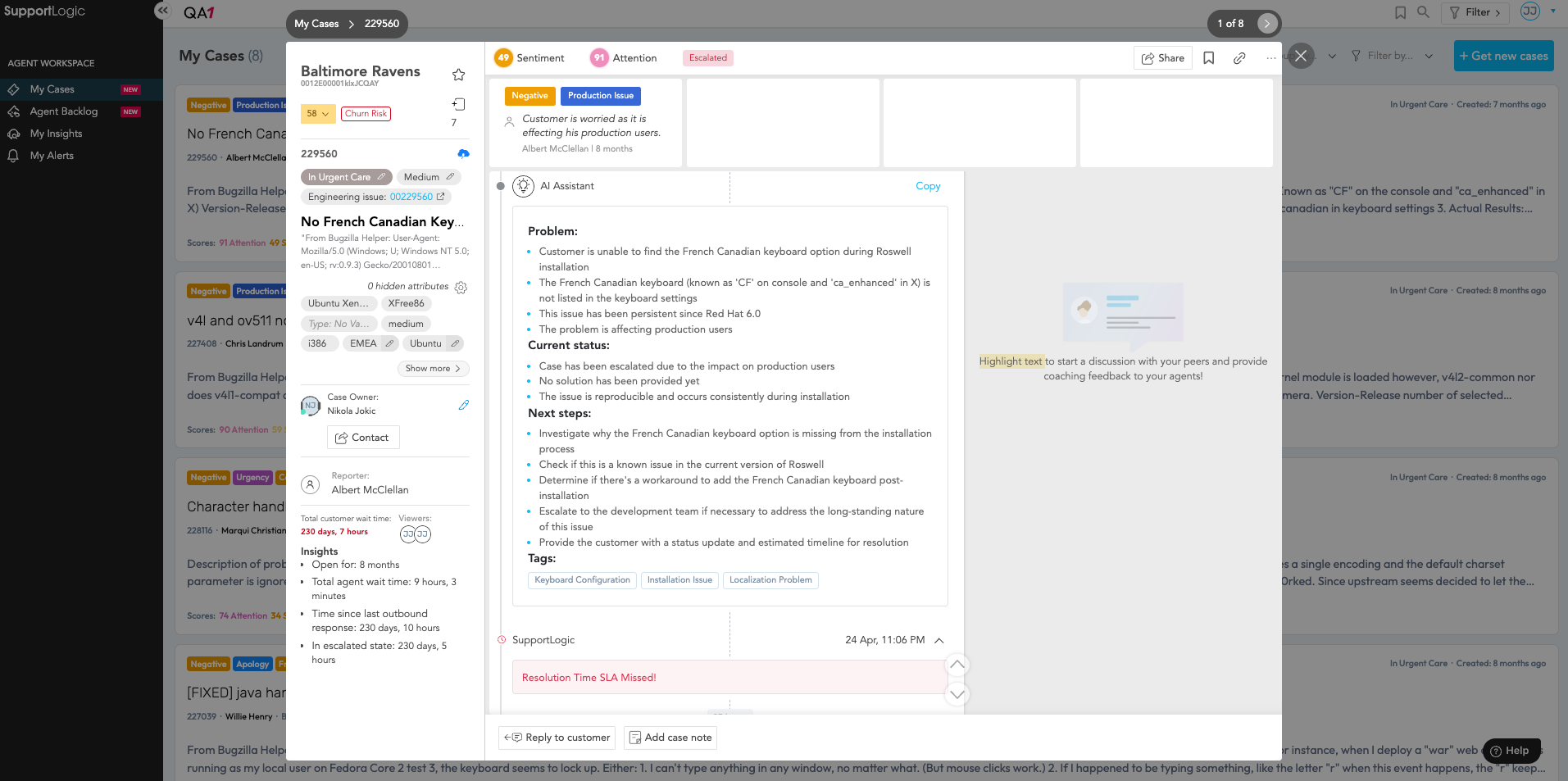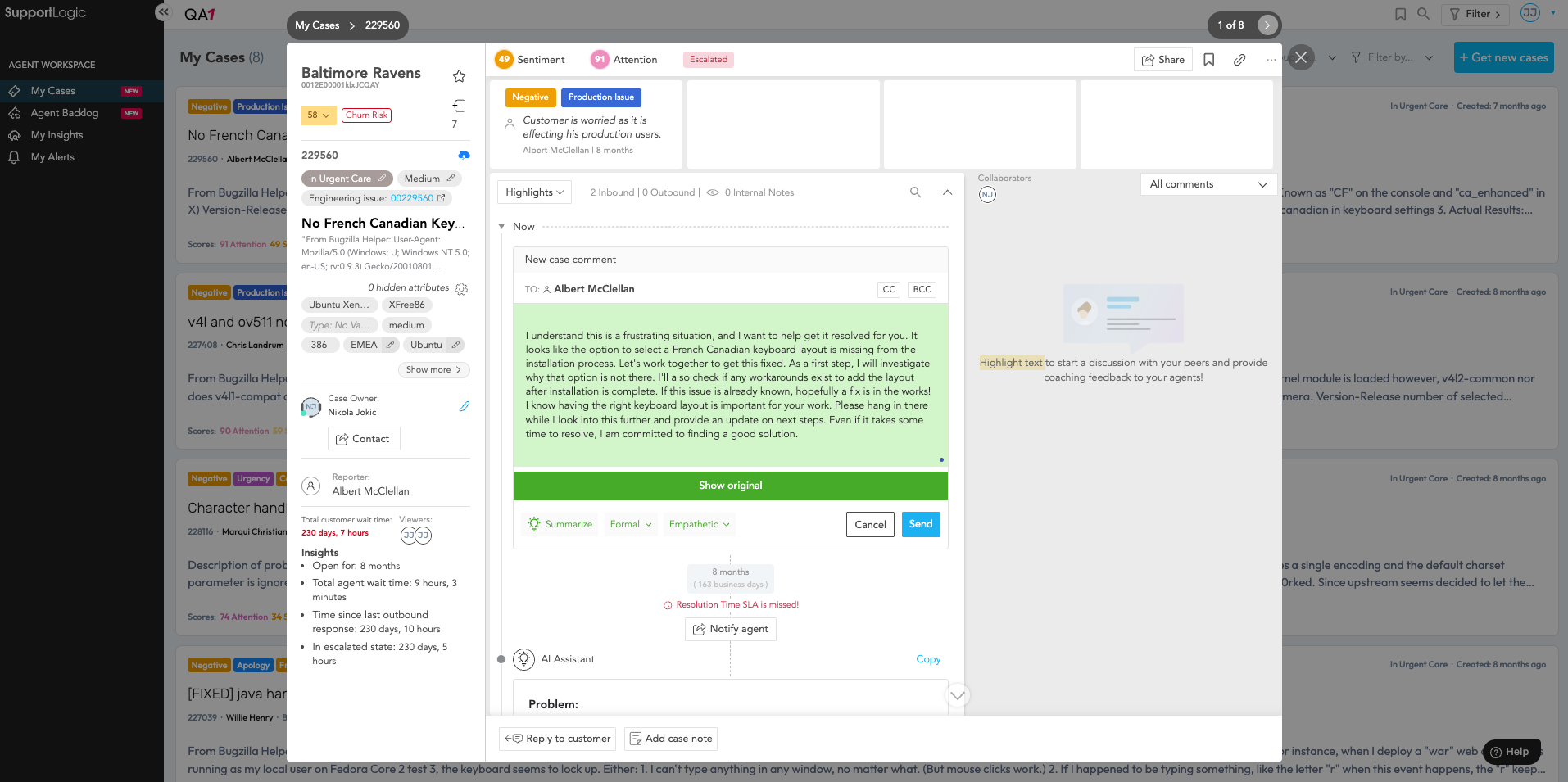 SupportLogic’s integration with GenAI provides agents with a summary of each case, enabling them to:
