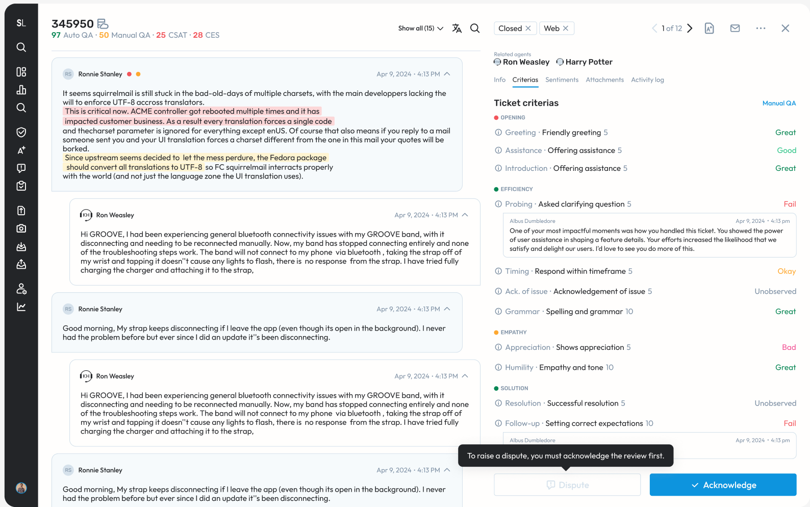 Acknowledgement of audits - Agents must now mark an audited case, its scores and feedback, as acknowledged, before they raise any Disputes for the case. We have also got enhancements to this lined up wherein admins can define timelines for the same and make this mandatory - so stay tuned.