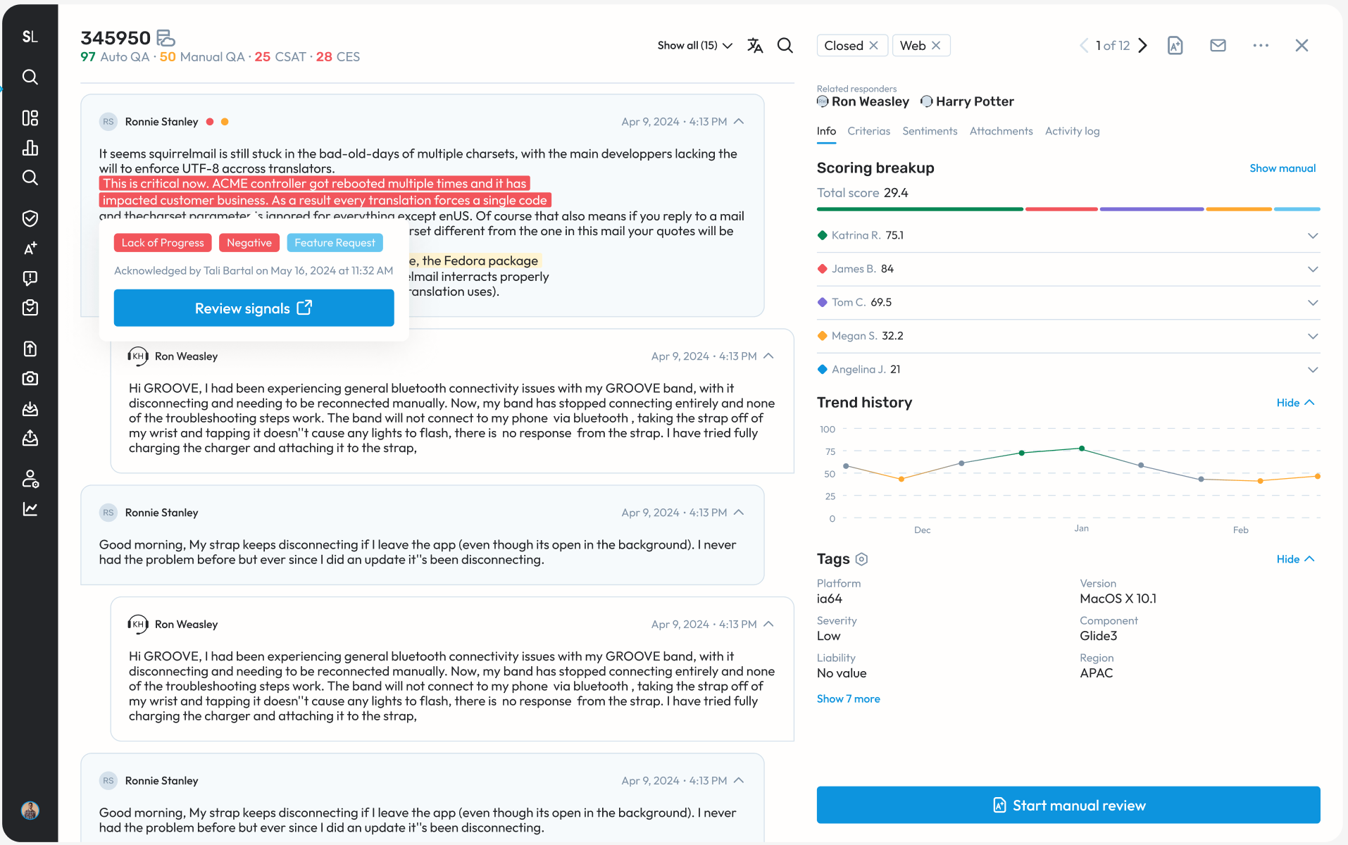 Core signals in Elevate - All of the signals that are detected in Core (eg: Confusion, Frustration etc), will now be available to view in case pages in Elevate. Soon, these will also be available as filters to use in pages and during workflows like Assignments.