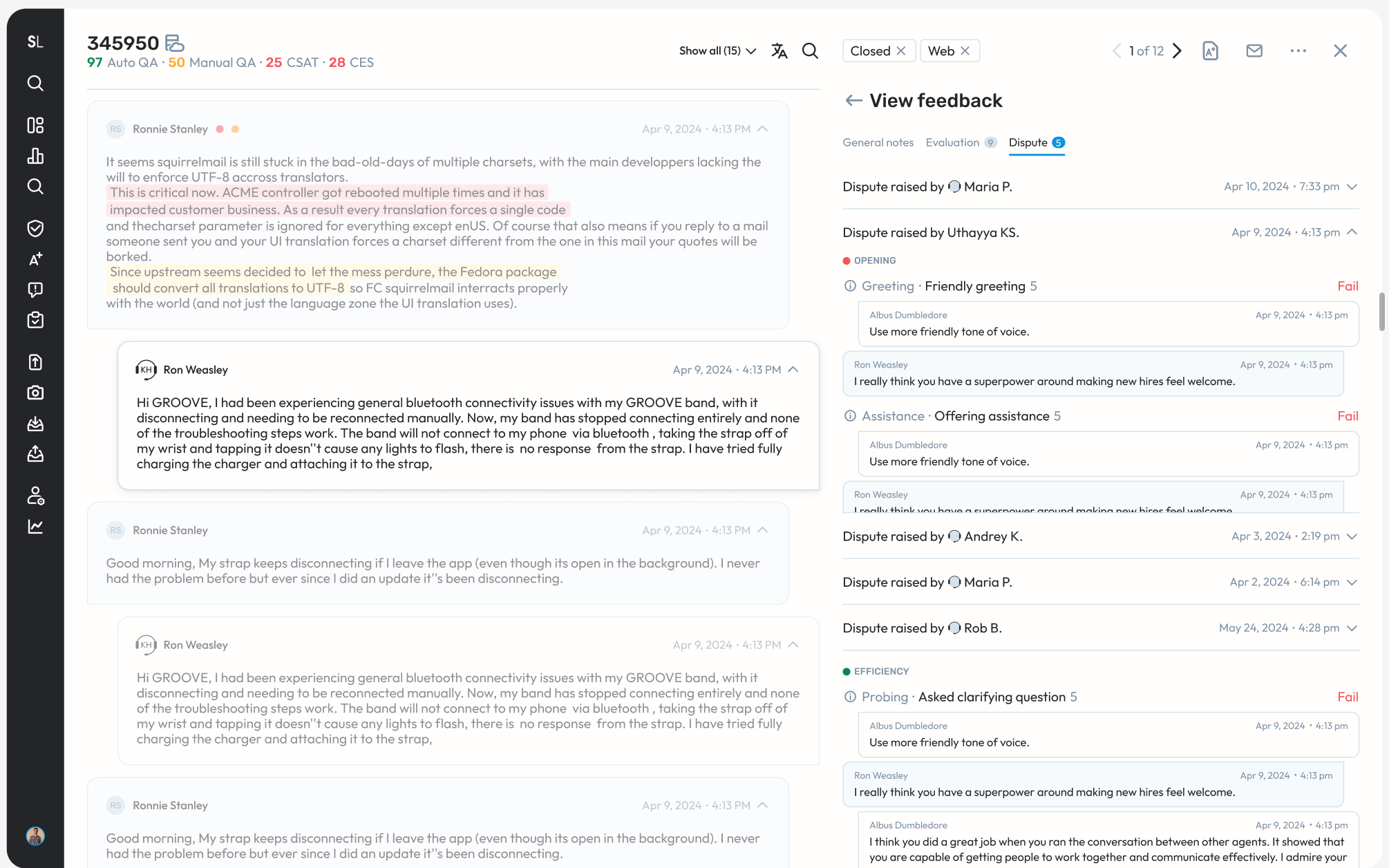 - Feedback - Until now, to view feedback that is linked to a case that is not a part of an audit, a user had to navigate to either the Coaching pages or the Disputes page. Now, all of it is available within the Case Details page itself, within the feedback tab.