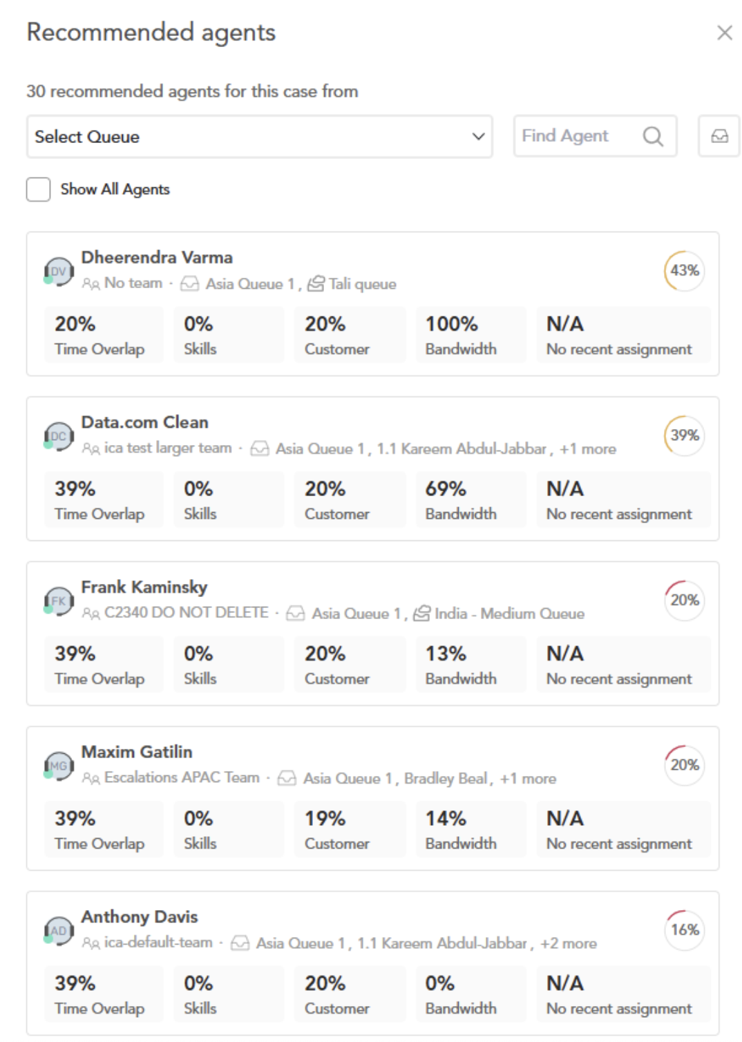 4. BandwidthEvaluates an agent’s capacity to handle new cases based on current workload. Factors Considered