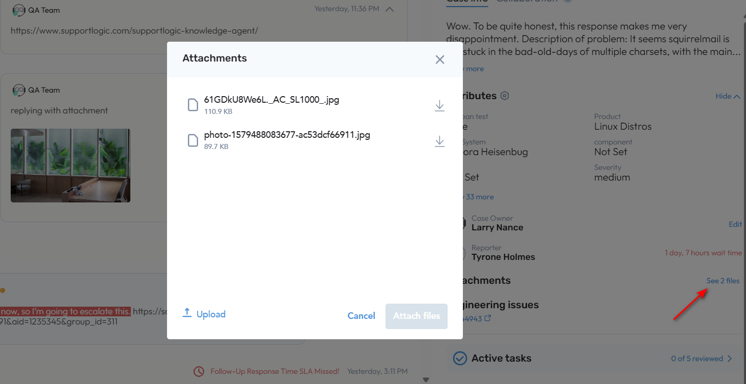 Resolve Assist, Response Assist and Knowledge Search in new SupportHub - Support Engineers can now resolve cases more efficiently right from within SupportLogic Support Hub experience leveraging features such as Case summary, Knowledge summary, Related knowledge sources, Draft response generation, Tonality, Translation, Knowledge search etc.