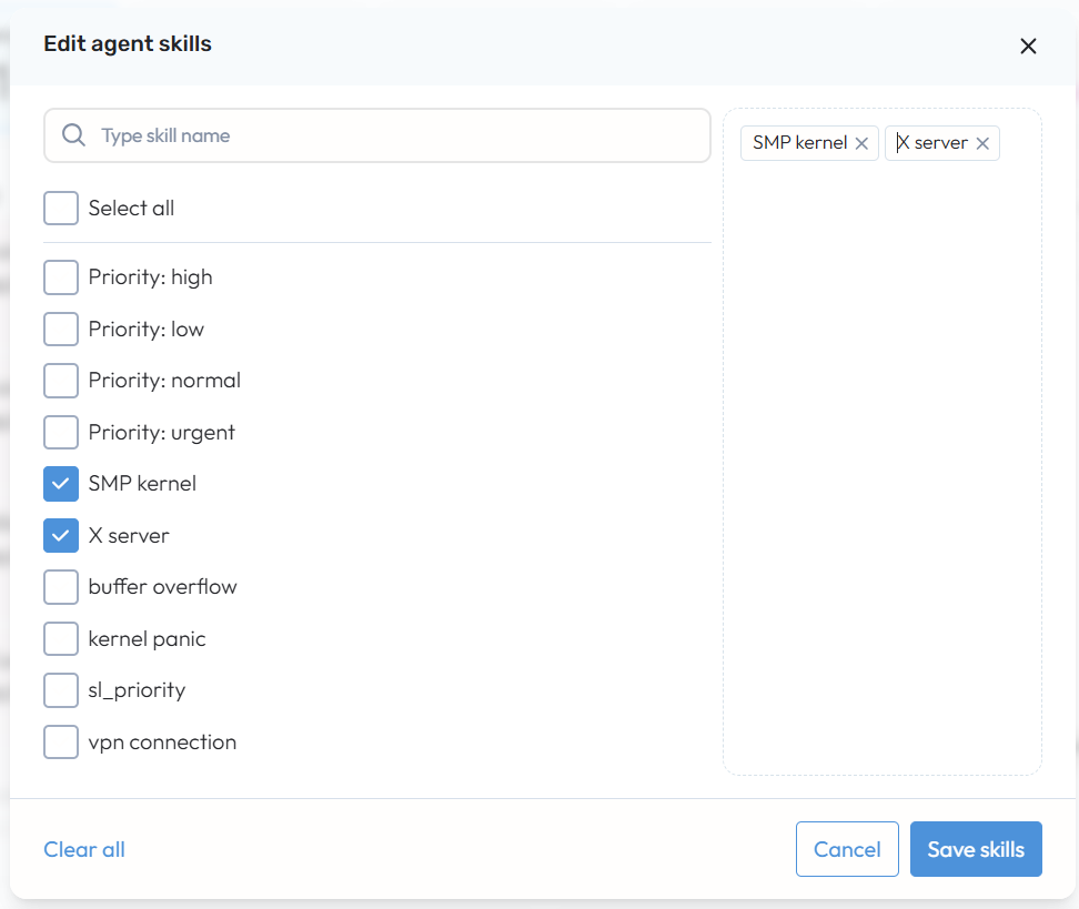 • View and edit an agent’s skills directly from their profile.