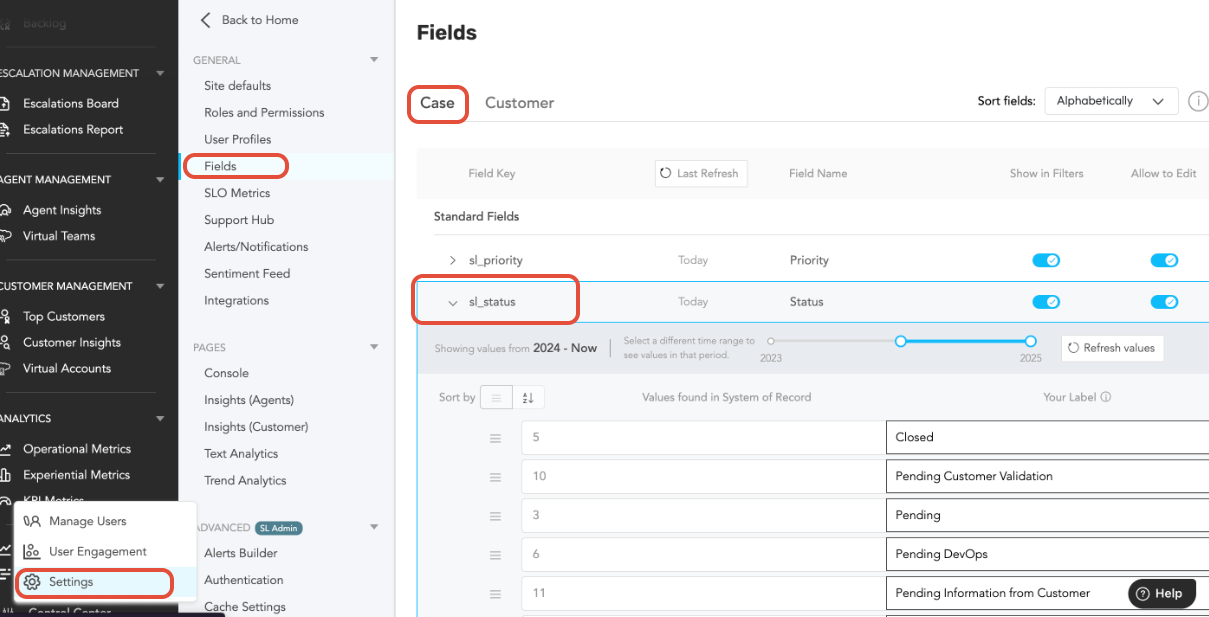 - Access to Control Center → Settings → Fields in SupportLogic