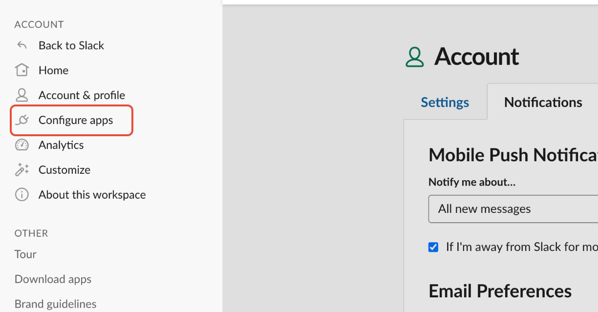 In the browser, select Configure Apps.