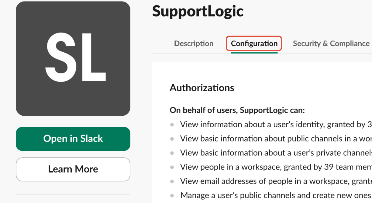 Please note: The authorization to manage or update alerts in Slack must come from your organization’s Slack workspace, not from SupportLogic.