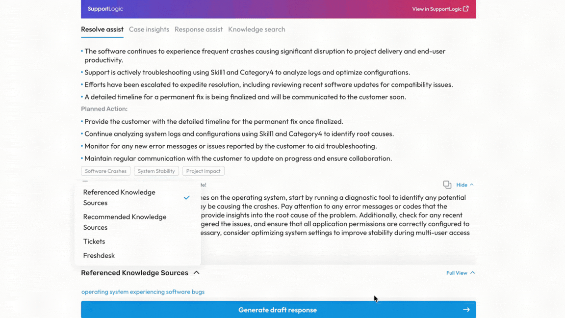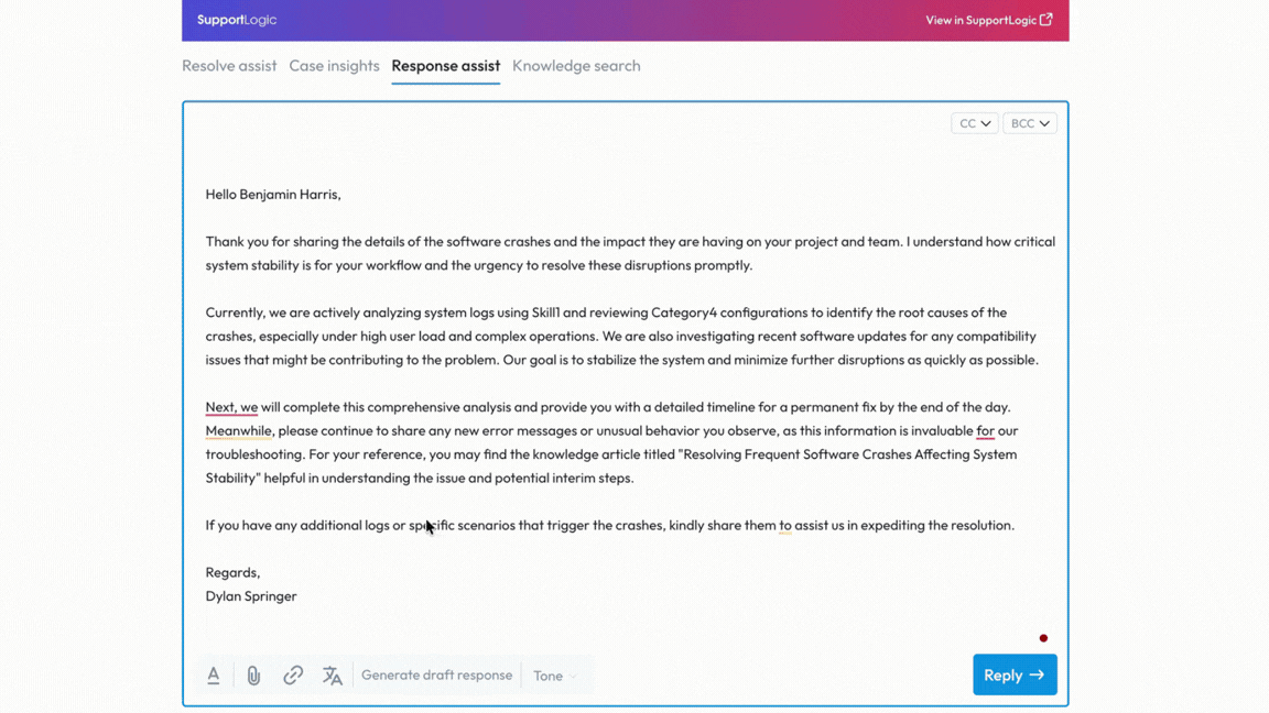 Agents can generate a draft response based on: