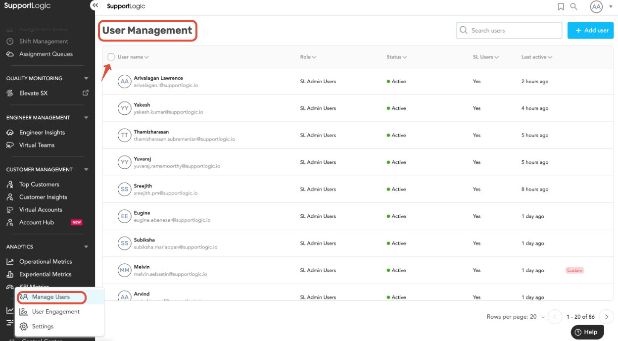 If additional help is needed with user management or report exports, please contact SupportLogic Support.